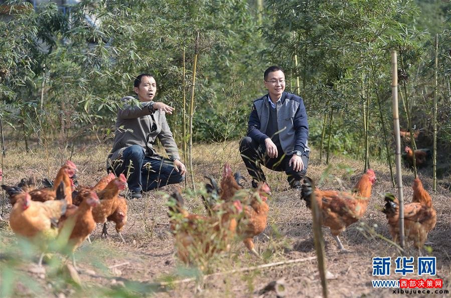李寶強(qiáng)(右)在一戶百姓家了解林下養(yǎng)雞情況(2015年11月25日攝)。李寶強(qiáng),眉山市青神縣瑞峰鎮(zhèn)天池村“第一書(shū)記”。為集中力量打好脫貧攻堅(jiān)戰(zhàn),四川省選派1.5萬(wàn)名優(yōu)秀機(jī)關(guān)干部到建檔立卡貧困村任職“第一書(shū)記”。黨的十八大以來(lái),以習(xí)近平同志為總書(shū)記的黨中央高瞻遠(yuǎn)矚、深謀遠(yuǎn)慮,以高度的政治感、使命感和責(zé)任感,把扶貧開(kāi)發(fā)工作提升至治國(guó)理政新高度,廣泛凝聚社會(huì)各界力量,推進(jìn)實(shí)施精準(zhǔn)扶貧方略,為到2020年全面建成小康社會(huì)奠定堅(jiān)實(shí)基礎(chǔ)。按照中央部署,通過(guò)產(chǎn)業(yè)扶持、轉(zhuǎn)移就業(yè)、易地搬遷、政策兜底等方式,到2020年將實(shí)現(xiàn)7017萬(wàn)農(nóng)村貧困人口脫貧目標(biāo)。新華社記者 薛玉斌 攝