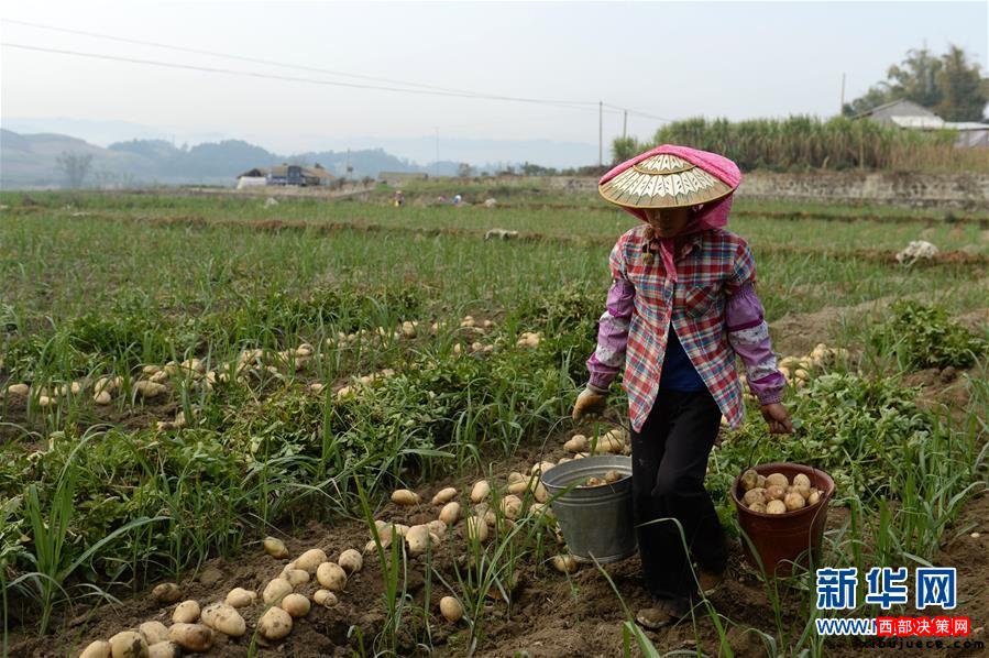 云南省德宏傣族景頗族自治州芒市軒崗鄉(xiāng)農(nóng)民提著采挖好的馬鈴薯準(zhǔn)備前去裝箱。當(dāng)?shù)伛R鈴薯每畝產(chǎn)值近6000元,是村民增收的主要途徑之一(2014年3月21日攝)。近年來(lái),云南省大力推進(jìn)扶貧攻堅(jiān),走出了一條整村、整鄉(xiāng)、整縣、整州推進(jìn)的扶貧開(kāi)發(fā)新路子。黨的十八大以來(lái),以習(xí)近平同志為總書(shū)記的黨中央高瞻遠(yuǎn)矚、深謀遠(yuǎn)慮,以高度的政治感、使命感和責(zé)任感,把扶貧開(kāi)發(fā)工作提升至治國(guó)理政新高度,廣泛凝聚社會(huì)各界力量,推進(jìn)實(shí)施精準(zhǔn)扶貧方略,為到2020年全面建成小康社會(huì)奠定堅(jiān)實(shí)基礎(chǔ)。按照中央部署,通過(guò)產(chǎn)業(yè)扶持、轉(zhuǎn)移就業(yè)、易地搬遷、政策兜底等方式,到2020年將實(shí)現(xiàn)7017萬(wàn)農(nóng)村貧困人口脫貧目標(biāo)。新華社記者 胡超 攝