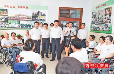 之后,習(xí)近平前往唐山市截癱療養(yǎng)院。他在康復(fù)室看望正在做康復(fù)訓(xùn)練的截癱傷員,一一了解他們的傷情和康復(fù)治療情況,問他們還有什么困難,祝他們健康長壽。在療養(yǎng)病室,他同因地震傷害截癱的楊玉芳、高志宏夫婦親切交談。得知他們長期參加力所能及的勞動和工作,努力融入社會、自食其力,習(xí)近平很高興。夫婦倆向總書記贈送自己新近出版的小說和詩歌集,并即興朗誦了一首歌頌解放軍當(dāng)年抗震救災(zāi)英勇事跡的詩歌,習(xí)近平稱贊他們樂觀上進(jìn)、事跡感人,用行動詮釋了生命的價值和意義。活動室內(nèi),10多位截癱傷員正在開展文娛活動,習(xí)近平來到他們中間,同他們親切交談,并欣賞了二胡伴唱《唱支山歌給黨聽》。習(xí)近平勉勵他們說,健全人可以活出精彩的人生,殘疾人也可以活出精彩的人生。我們每個人都要珍惜生命、追求健康,努力創(chuàng)造無愧于時代的精彩人生。習(xí)近平指出,大愛無疆,醫(yī)者仁心,醫(yī)護(hù)人員要樹立把傷殘人當(dāng)親人的思想,為傷殘人提供周到細(xì)致的服務(wù)。