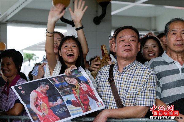 8月29日,里約奧運(yùn)會(huì)國(guó)家?jiàn)W運(yùn)精英代表團(tuán)抵達(dá)澳門(mén),展開(kāi)一連4天的訪問(wèn)行程,與澳門(mén)市民近距離交流。 中新社記者 張宇 攝