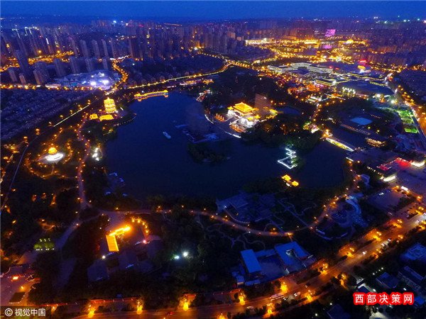 2016年08月30日,陜西省西安市,中央電視臺(tái)中秋晚會(huì)西安大唐芙蓉園分會(huì)場(chǎng)正在緊張布置中。記者從利用無人機(jī),分別航拍到大唐芙蓉園白天與夜晚的壯美風(fēng)景,如同一幅美麗畫卷,等待著中秋佳節(jié)的到來。