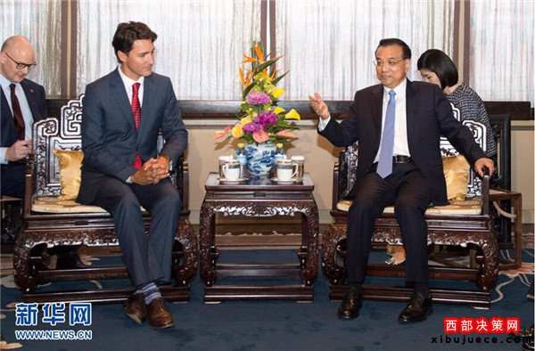 國(guó)務(wù)院總理李克強(qiáng)30日下午在北京會(huì)見來(lái)華進(jìn)行正式訪問的加拿大總理特魯多。
