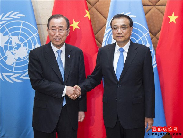 7月8日,國(guó)務(wù)院總理李克強(qiáng)在北京會(huì)見(jiàn)來(lái)華訪問(wèn)的聯(lián)合國(guó)秘書(shū)長(zhǎng)潘基文。