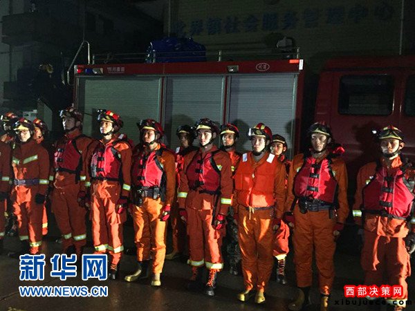 9月28日,救援人員在浙江省麗水市遂昌縣北界鎮(zhèn)集結(jié)待命。