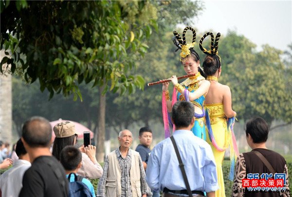 "活體雕塑"亮相大明宮遺址 為游客展現(xiàn)唐代風(fēng)貌