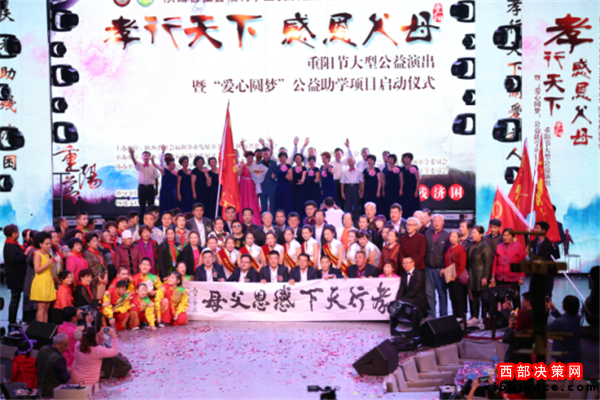 我國(guó)傳統(tǒng)的節(jié)日“九九重陽(yáng)”也是“老人節(jié)”。值此佳節(jié)之際,在西安金翅鳥演藝隆重舉行了由陜西省民政廳指導(dǎo)、陜西省社會(huì)福利事業(yè)發(fā)展基金會(huì)攜手陜西省慈善協(xié)會(huì)聯(lián)合主辦;陜西省社會(huì)福利發(fā)展基金會(huì)主持人專項(xiàng)基金委員會(huì)、陜西賓悅文化傳媒有限公司承辦;以及陜西省社會(huì)福利事業(yè)發(fā)展基金會(huì)陜北力量專項(xiàng)基金委員會(huì),陜西省社會(huì)福利事業(yè)發(fā)展基金會(huì)關(guān)公文化專項(xiàng)基金委員會(huì),陜西省社會(huì)福利事業(yè)發(fā)展基金會(huì)陜北民歌專項(xiàng)基金委員會(huì),陜西省社會(huì)福利事業(yè)發(fā)展基金會(huì)影視文化專項(xiàng)基金委員會(huì)聯(lián)合協(xié)辦的“孝行天下.感恩父母”大型公益演出暨“愛心圓夢(mèng)”公益助學(xué)項(xiàng)目啟動(dòng)儀式圓滿落幕。