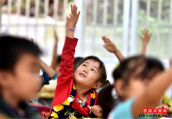10月10日,在廣西都安瑤族自治縣隆福鄉(xiāng)漁洞小學,學前班的同學們在課堂上踴躍舉手回答提問。