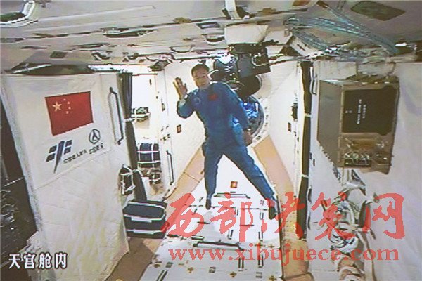 10月19日,神舟十一號(hào)航天員景海鵬和陳冬順利進(jìn)入天宮二號(hào)實(shí)驗(yàn)艙。這是景海鵬(左)和陳冬在天宮二號(hào)實(shí)驗(yàn)艙揮手(攝于北京航天飛行控制中心大屏幕)。