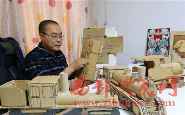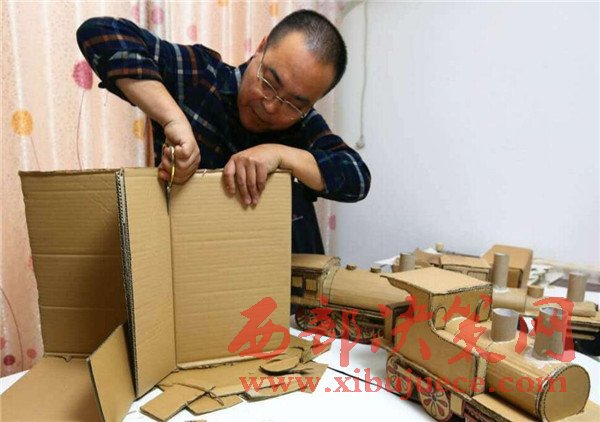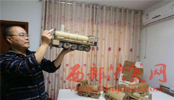 【廢舊紙箱變成精美的老式“蒸汽火車”】廢舊紙箱、紙盒能做什么呢?大多數(shù)人都會(huì)把它當(dāng)成廢品賣掉了,而市民王小龍卻變廢為寶地將其制作成了4個(gè)精美的老式“蒸汽火車”。11月20日,記者來(lái)到丈八北路附近的王小龍家中,剛下班的他顧不上休息,已經(jīng)在工作臺(tái)前做起微型“蒸汽火車”的車廂,已經(jīng)做好的4個(gè)微縮版的老式“蒸汽火車”醒目地?cái)[在桌子上,讓人眼前一亮。這些“蒸汽火車”全是用廢舊的紙箱、紙盒手工制作,司機(jī)室、鍋爐、煙囪、大燈、車輪等,樣樣都有。