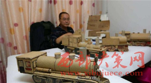 廢舊紙箱變成精美老式“蒸汽火車”