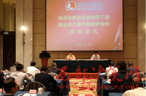 西部決策網(wǎng)訊11月14日至18日,陜西省質(zhì)監(jiān)系統(tǒng)領(lǐng)導(dǎo)干部綜合能力提升高級研修班在中國浦東干部學(xué)院成功舉辦。共有來自陜西省質(zhì)監(jiān)局機(jī)關(guān)各處室、直屬各單位和各市級、府谷縣、神木縣局共40名領(lǐng)導(dǎo)干部參加了培訓(xùn)學(xué)習(xí)。此次為期5天的研修班,著眼于提升陜西省質(zhì)監(jiān)系統(tǒng)干部的綜合素質(zhì)和領(lǐng)導(dǎo)能力,為實現(xiàn)質(zhì)監(jiān)部門服務(wù)大局能力水平的新提升和服務(wù)發(fā)展效果的新提升提供更加堅強(qiáng)的思想政治和組織保證。陜西省質(zhì)監(jiān)局黨組書記、局長喬軍出席結(jié)業(yè)儀式并發(fā)表重要講話。省局黨組成員、副局長李晉利出席開班儀式作動員講話,并全程參加培訓(xùn)學(xué)習(xí)。
