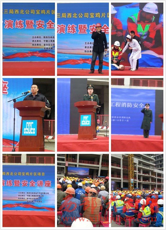 西部決策網(wǎng)訊(帥華鋒 李亮亮)11月24日下午,為促進施工現(xiàn)場消防安全管理,營造人人重視消防的良好氛圍,保障冬季施工安全,中建三局在寶雞中央金融文化商務區(qū)聯(lián)合舉行“冬季施工消防安全警鐘長鳴”為主題的消防安全知識講座、模擬消防急救演練,使在場的建設者們真正體會到了做好冬季施工消防安全的重要性和必要性。東嶺地產(chǎn)總公司各項目部、金臺消防大隊、金臺區(qū)質(zhì)檢站、寶雞市第三人民醫(yī)院、全體參建單位施工人員等500余人參加了此次活動。