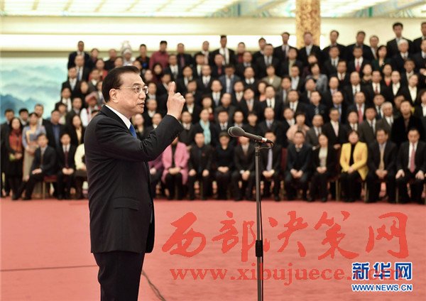 12月5日,中共中央政治局常委、國務(wù)院總理李克強(qiáng)在北京會(huì)見全國先進(jìn)個(gè)體工商戶代表,與他們合影留念并作重要講話。