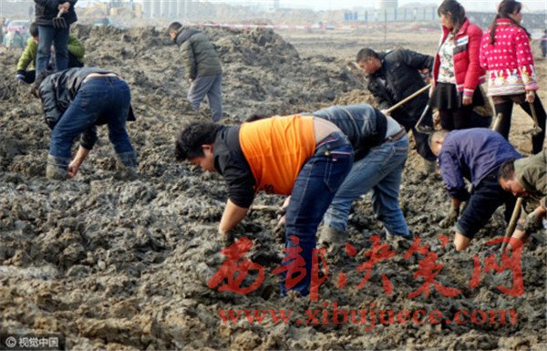 近百村民淤泥里“摸金”