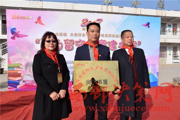 陜西省陽光少年資助協(xié)會顧問王余、會長王鳳英、秘書長溫向林、理事馬強、副會長張弘強、李江、辦公室主任王芷熹、會員代表王潤梅等;愛心人士河南電視臺睛彩中原欄目記者張文興、陜西源邦實業(yè)集團王源、劉楊等愛心團前往參加,為孩子們帶去愛心人士捐贈的一批課內(nèi)外書籍,并建成“潤鴻書屋”,藏書六百余本。此外,還為該校多名建檔立卡的貧困家庭學(xué)生送去書包、文具、手套、圍巾等學(xué)習(xí)生活用品。