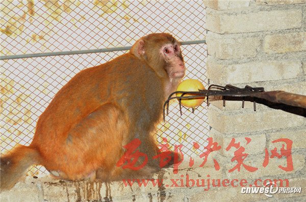 2016年12月8日,在寧強(qiáng)縣野生動(dòng)植物保護(hù)站的工作人員耐心“勸慰”下,這只獼猴終于轉(zhuǎn)過頭來看著鐵叉上的蘋果。
