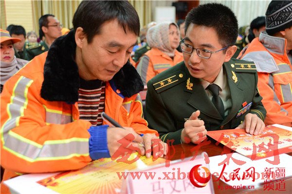 烏魯木齊邊檢站官兵與“親戚”填結(jié)對(duì)卡。