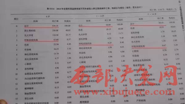 我們?cè)賮?lái)看這份國(guó)家衛(wèi)計(jì)委和中國(guó)疾病預(yù)防中心發(fā)布《中國(guó)死因數(shù)據(jù)集2014》,這是我國(guó)最權(quán)威的死因數(shù)據(jù)報(bào)告,其中兒童各年齡段的死亡率寫得很清楚。