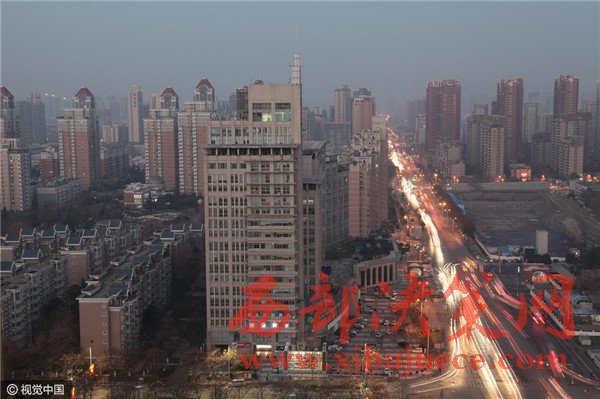 2016年12月22日,西安,在經(jīng)歷前日一場(chǎng)風(fēng)吹之后,困擾古城西安10余天的霧霾逐漸散去。加上昨天是二十四節(jié)氣中的冬至,也是一年當(dāng)中黑夜最長(zhǎng)的一天,當(dāng)日一早,鳥瞰城市,雖然已是早7點(diǎn)半,但仍然是燈火闌珊。清晨城市車水馬龍,萬(wàn)家燈火、迎來(lái)新的一天璀璨的美景,停課兩天的學(xué)生終于重返課堂。