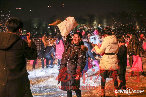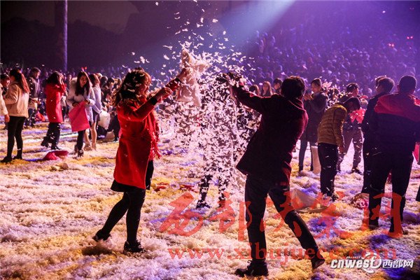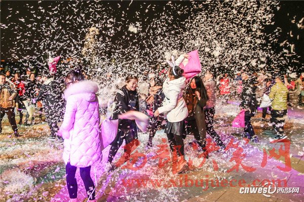 12月24日是西方傳統(tǒng)節(jié)日平安夜,風(fēng)靡全球的“枕頭大戰(zhàn)”在西安大唐芙蓉園舉行,眾多青年男女相聚于此,拋卻煩惱與壓力,火熱“開戰(zhàn)”,歡樂(lè)與羽毛齊飛。