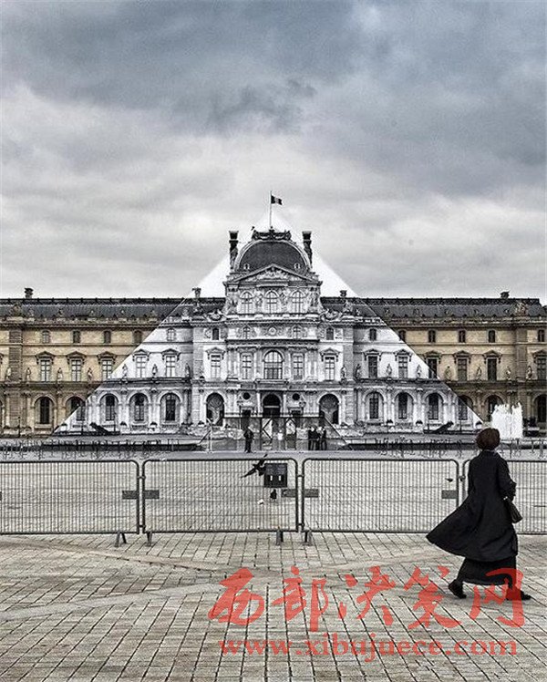 利用攝影技術,法國街頭藝術家JR讓巴黎盧浮宮前著名的玻璃金字塔消失了。當從一個精確的角度看過去,金字塔真的不見了,我們得以見到盧浮宮驚人的“真面目”。
