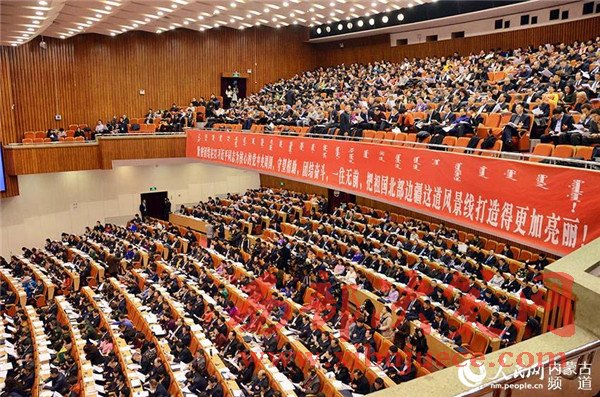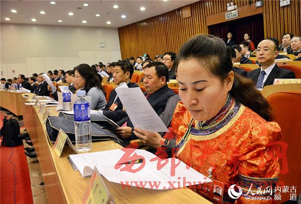 民主、團結(jié)、求實、奮進。內(nèi)蒙古人民會堂格外莊嚴,主席臺帷幕中央國徽高懸,會場氣氛隆重熱烈。