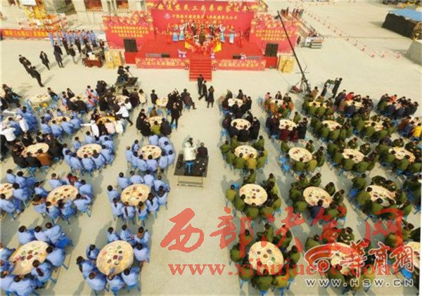 “大家雖在一個工地干活,但聚在一起吃飯還是第一次!”昨日上午10時30分,在該項目工地的一塊廣場上,120張桌子擺在中間場面相當震撼,廣場西側(cè),20多位廚師正在為這頓團圓飯而忙碌著。