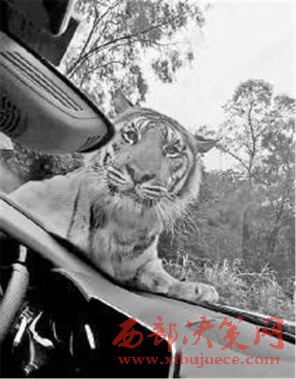 媒體分享的照片顯示,在樂和樂都自駕體驗(yàn)區(qū),一只體型巨大的老虎攔下了一輛游客車輛,隔著擋風(fēng)玻璃向車內(nèi)張望,隨后又直接趴在了引擎蓋上。觀察到這一情況后,園區(qū)的工作車輛迅速趕到,將老虎驅(qū)離,整個(gè)過程有驚無險(xiǎn)。
