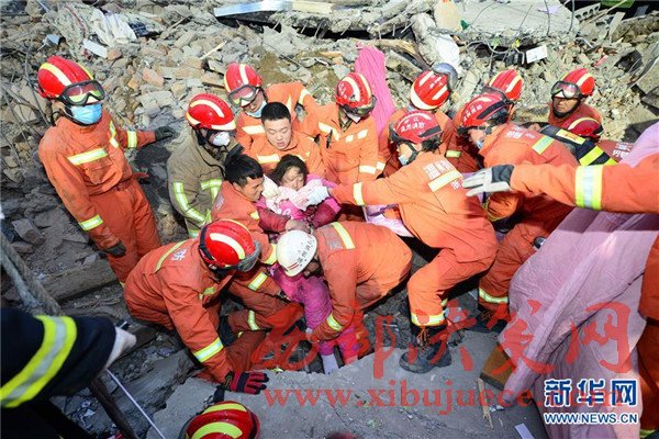 2月3日清晨,在浙江溫州文成民房倒塌事故現(xiàn)場(chǎng),救援人員救出第二名幸存者。