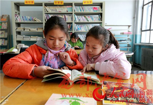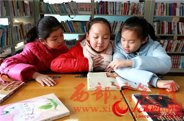 2月4日,新疆生產(chǎn)建設(shè)兵團(tuán)第五師八十一團(tuán)城鎮(zhèn)社區(qū)的農(nóng)家書屋里,學(xué)生們?cè)陂喿x自己喜愛的書籍。