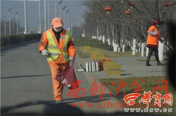 關(guān)安余是長(zhǎng)安區(qū)城市管理局的保潔員,工作已2年,家就在附近的村子,他負(fù)責(zé)環(huán)山路北側(cè)上寨村至新莊一段保潔區(qū)。“過年這幾天車流量大,垃圾也就多,但我們的要求是保證路面不得出現(xiàn)煙頭、果皮紙屑、飲料瓶,眼睛看見了就得撿起來,如果100米內(nèi)出現(xiàn)3個(gè)垃圾就算工作不合格。”關(guān)安余說。