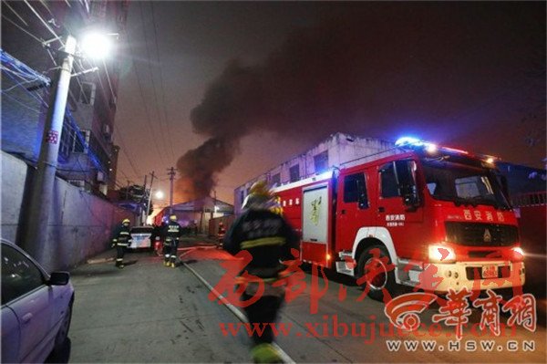 2月11日晚,西安市豐禾路上一倉庫起火,倉庫內(nèi)存有面包車、白酒、輪胎等物,消防部門撲救三小時才控制,幸無人員傷亡。