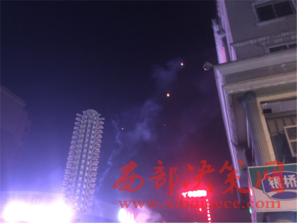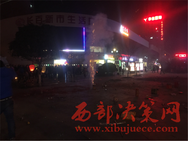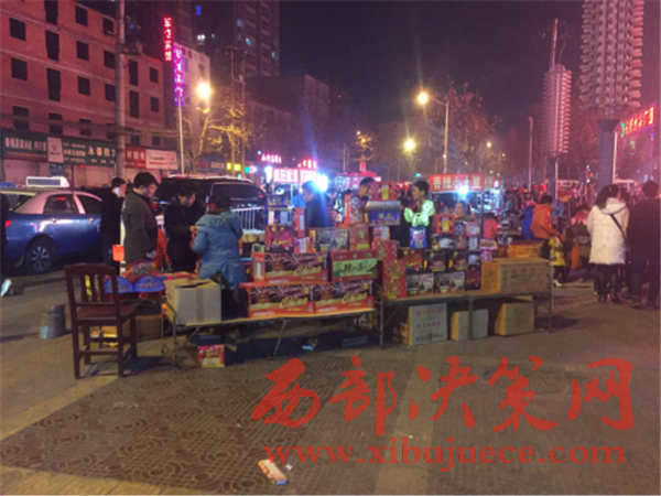 21時(shí),我社工作人員趕到了李女士所居住的長(zhǎng)安區(qū)步行街北口,見道路兩邊停滿了車輛,交通嚴(yán)重堵塞。廣場(chǎng)上鞭炮聲震耳欲聾,煙花四濺,空中濃煙滾滾,硝煙刺鼻。平均不到5分鐘就有一盞孔明燈迎空而上,現(xiàn)場(chǎng)圍滿了看熱鬧的市民。在現(xiàn)場(chǎng),一家賣煙花爆竹的攤位生意格外紅火,攤主在沒有任何防護(hù)措施的情況下就做起了買賣。