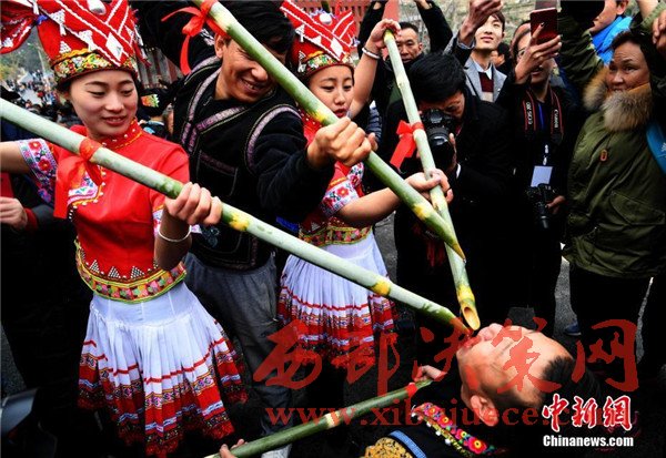 2月26日,“中國·西疇2017女子太陽節(jié)”在云南省文山壯族苗族自治州西疇縣舉辦。女子太陽節(jié)又稱女人節(jié),是西疇縣湯谷村的傳統(tǒng)節(jié)日,起源于母系氏族社會先民對太陽的崇拜。每年農(nóng)歷二月初一這一天,所有年滿16歲以上壯族女子沐浴凈身祭祀太陽。活動期間,除了傳統(tǒng)太陽神祭祀外,還有千人摸魚、斗鳥比賽以及壯鄉(xiāng)童謠節(jié)目表演等活動。