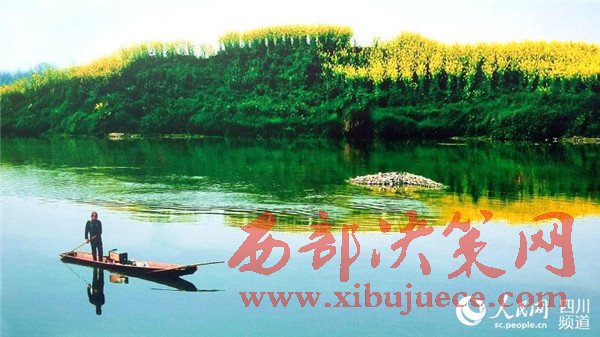 在崇州,每到一處皆是景。圖為一艘小船劃過(guò)平靜的河面。(圖片由崇州市委宣傳部提供)