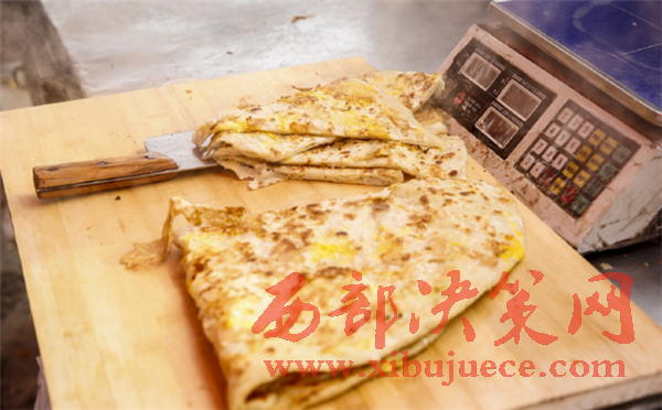 大哥說:“咱烙的餅實(shí)惠,買的也不貴,5元一斤,一大半是老主戶,今天正趕上書會,人多,都做了200多斤干面粉的雞蛋餅了,大約有將近400斤大餅吧。”雖然忙,也很累,手腳一刻都停不下,但是大哥很高興。小編給大哥拍照時,大哥手里的搟面杖也不曾停下。