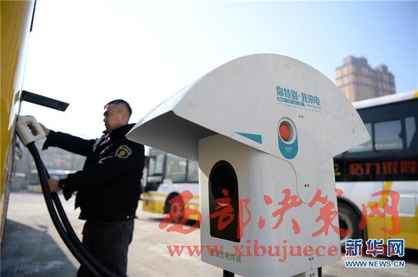 3月2日,一名公交車駕駛員在使用充電樁對(duì)公交車進(jìn)行充電。