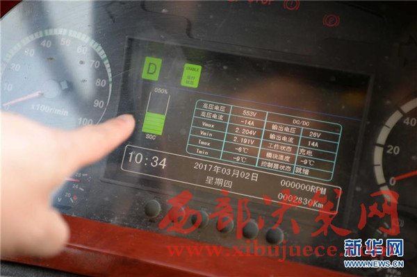 3月2日,圖為純電動(dòng)公交車的儀表盤上顯示的剩余電量。