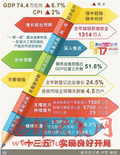 國(guó)務(wù)院總理李克強(qiáng)5日在作政府工作報(bào)告時(shí)說(shuō),過(guò)去一年,我國(guó)發(fā)展面臨國(guó)內(nèi)外諸多矛盾疊加、風(fēng)險(xiǎn)隱患交匯的嚴(yán)峻挑戰(zhàn)。在以習(xí)近平同志為核心的黨中央堅(jiān)強(qiáng)領(lǐng)導(dǎo)下,全國(guó)各族人民迎難而上,砥礪前行,推動(dòng)經(jīng)濟(jì)社會(huì)持續(xù)健康發(fā)展。黨的十八屆六中全會(huì)正式明確習(xí)近平總書記的核心地位,體現(xiàn)了黨和人民的根本利益,對(duì)保證黨和國(guó)家興旺發(fā)達(dá)、長(zhǎng)治久安,具有十分重大而深遠(yuǎn)的意義。各地區(qū)、各部門不斷增強(qiáng)政治意識(shí)、大局意識(shí)、核心意識(shí)、看齊意識(shí),推動(dòng)全面建成小康社會(huì)取得新的重要進(jìn)展,全面深化改革邁出重大步伐,全面依法治國(guó)深入實(shí)施,全面從嚴(yán)治黨縱深推進(jìn),全年經(jīng)濟(jì)社會(huì)發(fā)展主要目標(biāo)任務(wù)圓滿完成,“十三五”實(shí)現(xiàn)了良好開(kāi)局。