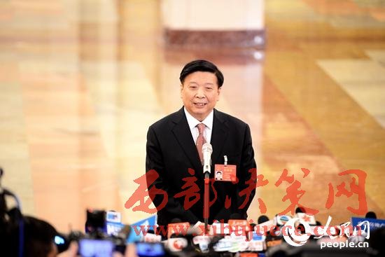 國(guó)土資源部部長(zhǎng)姜大明在“部長(zhǎng)通道”上回答記者提問(wèn)