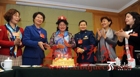 這是一次為6位女委員慶祝節(jié)日的聚會,更是一次民族團結的聯誼。6位女委員分別來自漢族、維吾爾族、錫伯族、烏孜別克族、柯爾克孜族,姐妹們在一起參加全國兩會已有5年,雖然并不在同一個界別,但大家互幫互學互助,早已結下了深厚的友誼。每年“三八”婦女節(jié)都恰逢全國兩會,姐妹們相聚在一起,同慶節(jié)日,親如一家。