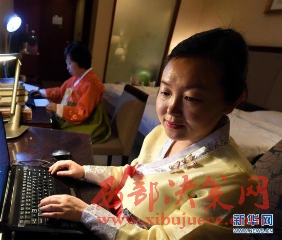 由中國民族語文翻譯局組建的十二屆全國人大五次會(huì)議和全國政協(xié)十二屆五次會(huì)議秘書處民族語文翻譯組,承擔(dān)著大會(huì)民族語文翻譯任務(wù)。他們的主要工作包括:用蒙古、藏、維吾爾、哈薩克、朝鮮、彝、壯7種民族語文進(jìn)行大會(huì)文件的翻譯;負(fù)責(zé)7種民族語文大會(huì)文件的印制;舉行全體會(huì)議時(shí),進(jìn)行現(xiàn)場(chǎng)同聲傳譯;負(fù)責(zé)向北京、內(nèi)蒙古、廣西、四川、西藏、青海、新疆等省區(qū)市新聞媒體提供大會(huì)主要文件的民族文譯稿等。圖為3月7日晚,民族語文翻譯組工作人員牧蘭、敖敦高娃、哈斯布日古德(從左至右)在為第二天的大會(huì)同聲傳譯做準(zhǔn)備。