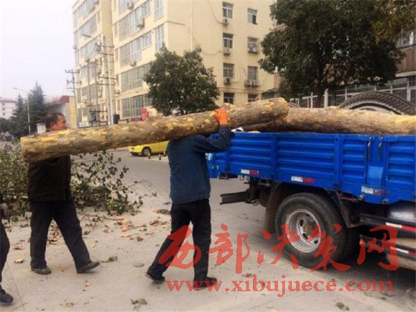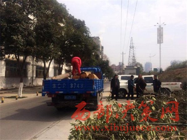 據(jù)了解,砍樹(shù)的人講這個(gè)地方要做工程,有人請(qǐng)他們把這些樹(shù)木砍了。所砍木料被賣給了木材加工廠,現(xiàn)場(chǎng)的車輛及裝車人員都是渭濱區(qū)高家村某木材廠的人員??硺?shù)現(xiàn)場(chǎng)未發(fā)現(xiàn)有市政和園林環(huán)衛(wèi)部門的管理人員。