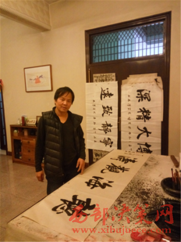 于是在今年的3月18日,經(jīng)過多次聯(lián)系我終于踏上尋訪神交已久的故人,初次看到他映入我的眼簾的是中等的身材蓄著長發(fā)三七分,方形臉,一個典型的關中漢子的形象。就是這樣一個默默無聞平凡無奇的人,當他進入蕓蕓眾生之中,尋找起來是那樣的不容易。