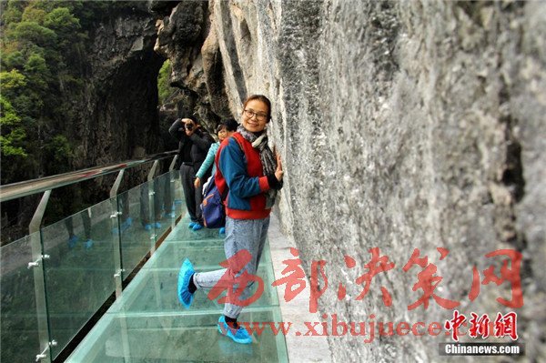 廣西最長(zhǎng)玻璃棧道建在崖壁上最高懸空60米
