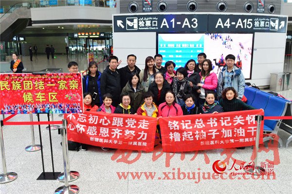 3月25日上午,在新疆最大的綜合交通樞紐--烏魯木齊火車站,由烏魯木齊開出的首趟T9526/7次“民族團結(jié)一家親號”特快旅客列車,滿載到和田地區(qū)看望結(jié)對認親戶的自治區(qū)教育廳、公安廳、衛(wèi)計委的545名干部和車內(nèi)各族旅客共計近900人啟程發(fā)車。