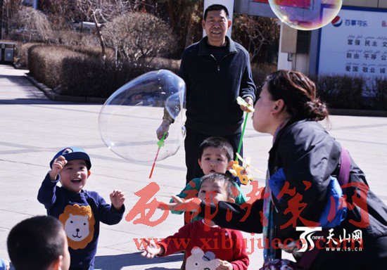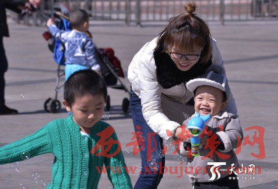 3月29日,烏魯木齊市天氣晴朗,天空一片湛藍,很多市民都走出家門享受春天的陽光,不少孩子在人民廣場上追逐、奔跑、吹泡泡、放風箏,玩得不亦樂乎。當日,烏魯木齊市最高氣溫達到14攝氏度,市民已經(jīng)脫下了厚厚的棉衣,穿上了春裝。
