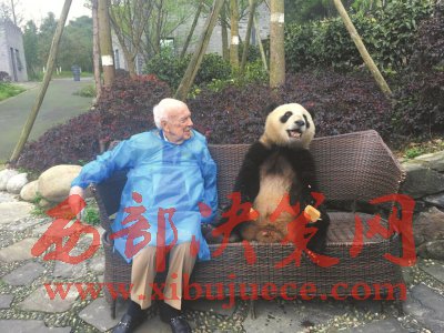 4月3日,中國(guó)大熊貓保護(hù)研究中心都江堰基地,詹姆斯·沃森博士與大熊貓親密接觸。