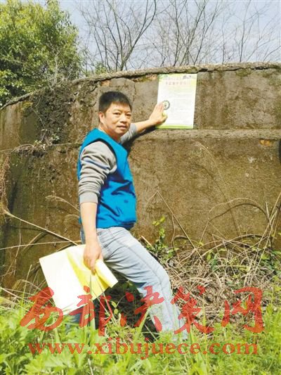 毛建偉在湘潭法華山張貼愛鳥宣傳海報(bào)。