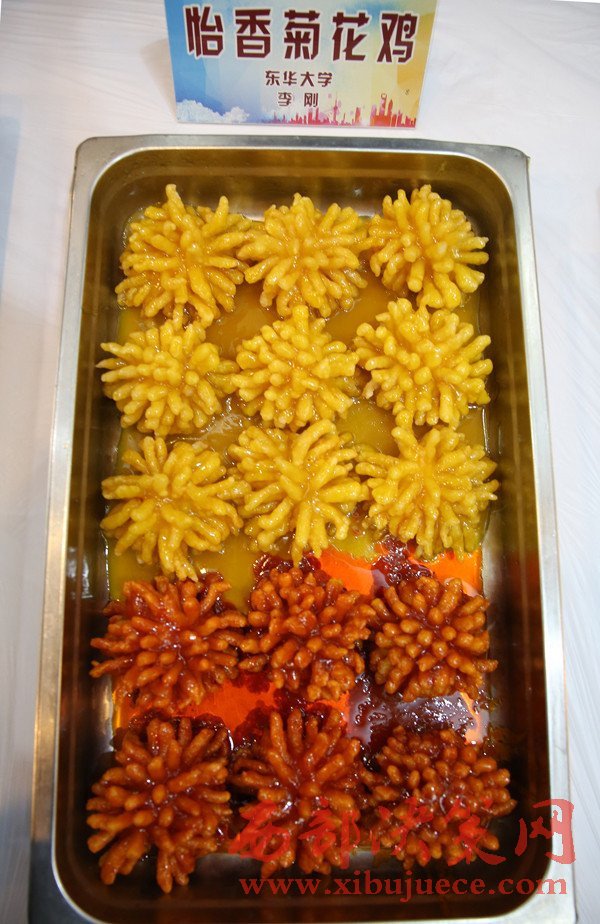 “中國(guó)第九大菜系”食堂菜的菜譜里,一天之內(nèi)多出了上百個(gè)新成員。11月12日,一場(chǎng)上海高校食堂間的“創(chuàng)新菜”比賽在上海大學(xué)寶山校區(qū)舉行。東華大學(xué)食堂借鑒“菊花魚(yú)”,推出了一道“怡香菊花雞”,也引起了現(xiàn)場(chǎng)的熱議,最終斬獲禽菜類(lèi)前十名。